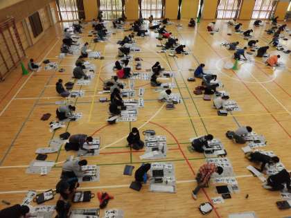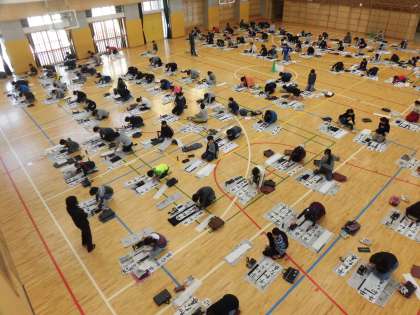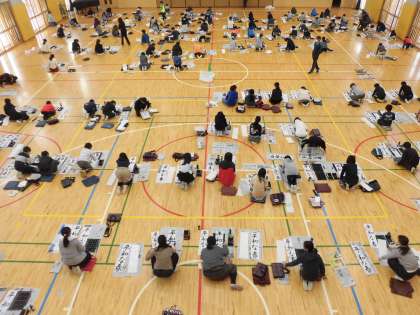 8日(火)の3・4時間目、校内のトップを切って6年生が体育館で席書会を行いました。ゆったりと場所を確保し、昨年の12月から練習してきた「平和な春」の清書に臨みました。140名を超える人数がいても静かに文字を書く姿がありました。最上級生としての落ち着きを感じました。