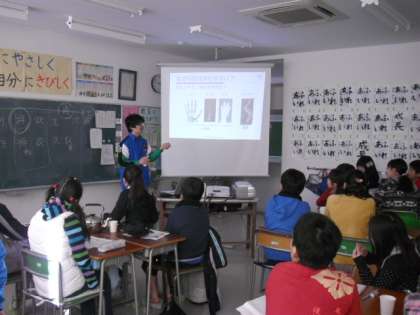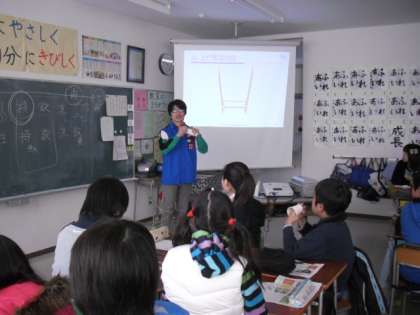 6年生の理科の授業の様子です。昨日に引き続き金沢工業大学教授 三谷先生による「科学教室」です。この時間で3クラスすべて行ったことになります。「なぜ円柱はもちやすいのか?」と子どもたちに投げかけ様々な視点から考えていきます。子どもたちも保護者の方も興味深い話にうなずきながら聞いていました。