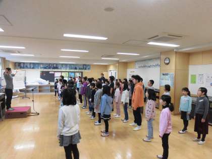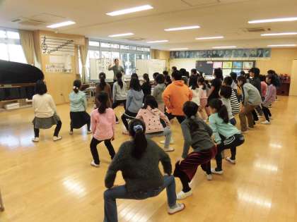 9日(水)、合唱団の朝練習がありました。寒さの厳しい朝でしたが、子どもたちは元気に参加しました。12日(土)のミニコンサートに向けて発表する曲を全部通して歌いました。一音一音の音程を大切に、言葉をはっきり歌うことを何度も練習しました。途中、体重をかけるために腰を落として歌う練習もしていました。