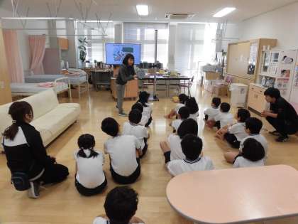 9日(水)の1時間目、ひかり学級の子どもたちは保健室で計測を行いました。最初に、養護教諭から「かぜウィルス」についての話を聞きました。画面を見ながら、手洗いの大切さや栄養バランスのとれた食事をすることなどを学びました。その後、一人ずつ身長と体重を量りました。保健室前には、脱いだ上履きがきちんとそろえられていました。