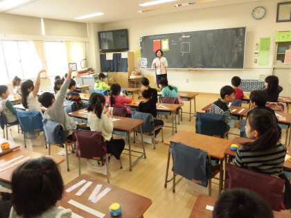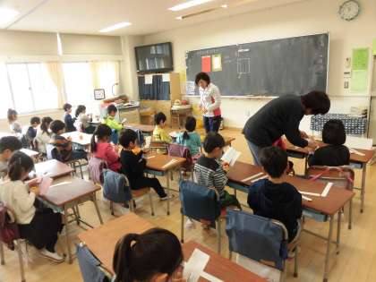 10日(木)の3・4時間目、1年1組は図画工作の時間でした。書き初め用紙を貼る「掛け軸」を作っていました。千代紙を切ったり、のりを付けたりして赤い画用紙をすてきな掛け軸に完成させました。12日から書き初め展が始まりますが、今回の掛け軸もどうぞご覧になってください。