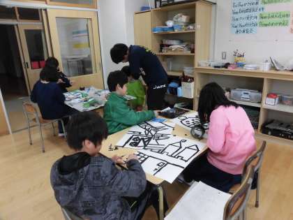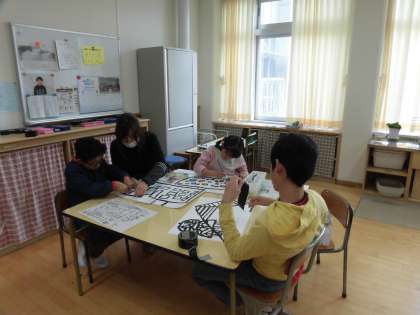 10日(木)の3・4時間目、ひかり学級の子どもたちは図画工作の時間でした。「ガムテープのけんちくか」と題した作品つくりに取り組んでいました。黒色のガムテープを細長くさき、建物の外枠にします。どんな建物になるのか、完成が楽しみです。