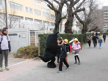 学校公開期間に合わせて保護者・地域の皆様による「あいさつキャンペーン」が始まりました。門には保護者や地域の方の他に子どもたちに大人気の「からぴょん」も登場しました。からぴょんを見付けると笑顔で走ってくる子どもたちもたくさんいました。タッチをしてとても嬉しそうでした。