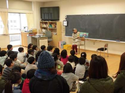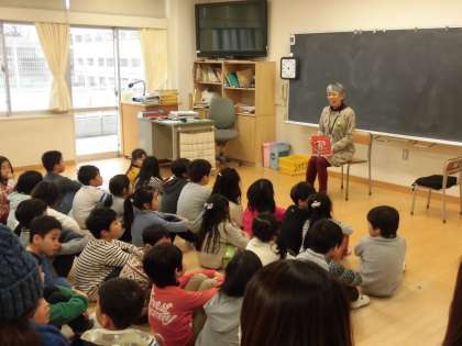12日(土)、1年生はお話会に参加しました。今回も「たんぽぽ〜語りと本〜」の方にお越しいただきました。お正月のお話をはじめ、たくさんの本を読んでくださいました。子どもたちも静かに話の世界に聞き入っていました。写真は、3時間目の2組の様子です。