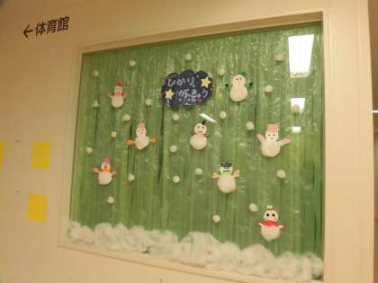 ひかり学級職員室の飾りが変わりました。かわいい雪だるまが登場しました。ひかり学級の子どもたちが雪だるまを作り、先生たちと一緒に飾りました。
