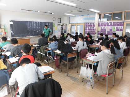 17日(木)の2時間目、6年1組は国語の時間でした。伝記「猿渡 勝子」の第1回目でした。担任の先生の範読で10分を要しましたが、子どもたちは静かに話の内容を聞き取っていました。その後、心に残ったことをノートに書きました。6つの意味段落があることも理解していました。
