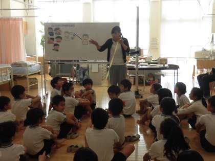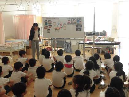 17日(木)の3時間目、3年5組は保健室で計測を行いました。今回は養護教諭から「風邪やインフルエンザの予防」についての話をしました。特に咳をしたときにどうなるのかについては、具体物を使ってわかりやすく説明していました。子どもたちは、うがい手洗いを続けるとともに咳エチケットについても理解しました。