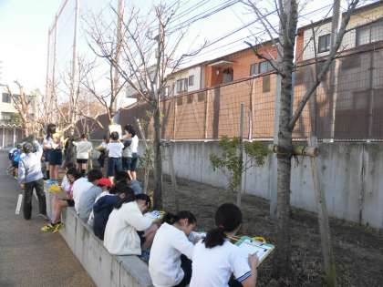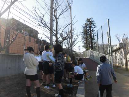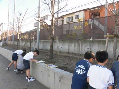 17日(木)の5時間目、4年1組は理科の時間でした。校庭に出てサクラの木を観察していました。特に「芽」に変化が現れていることを見付けて、観察ノートに記録していました。