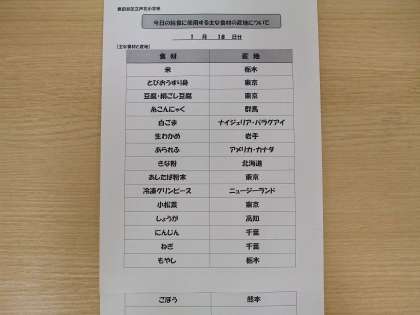 今日は、八丈島産の「とびうお」と「あしたば」、東京都産の「小松菜」など、東京都の名産品を使いました。あまり聞きなじみのない食材に驚きの声もありましたが、子どもたちはおいしいと言ってたくさん食べてくれました。