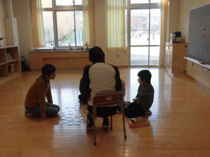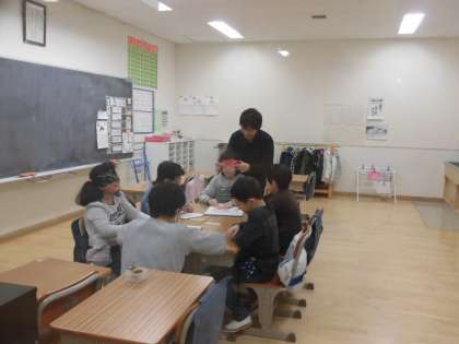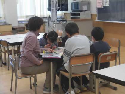 18日(金)の2時間目、ひかり学級では昔遊びをしていました。かるた、福笑い、すごろくの3グループに分かれて取り組みました。それぞれに子どもたちの笑顔がありました。