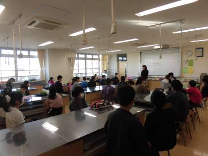 21日(月)の1・2時間目、6年1組は家庭科の時間でした。「寒い季節を快適に」と題して冬休み中に取り組んだり調べたりしたことを発表しました。最初にグループ内で一人2分以内で発表しました。その後、グループの代表を一人選び、みんなの前で発表しました。寒い季節でも快適に過ごせる工夫がいくつもあることがわかりました。