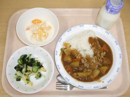 毎年1月22日は「カレーライスの日」です。今日の芦花小では、角切りの豚肉を使った「ポークカレーライス」をいただきました。具だくさんで、ついつい食べ過ぎてしまう、美味しいカレーライスでしたね。