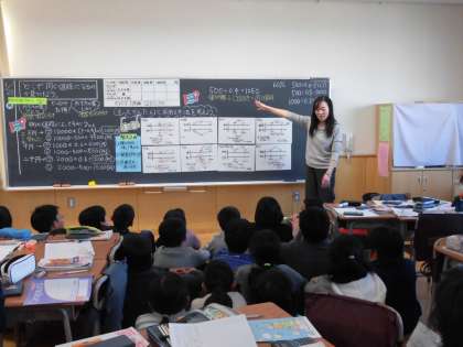 23日(水)の5時間目、校内研究会を行いました。今回は、5年3組と4組の算数の研究授業でした。単元名「割合とグラフ」のチャレンジ問題に取り組みました。授業後、講師の先生からご指導をいただきました。