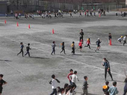 木曜日の中休みは2年生、4年生、6年生、ひかり学級の子どもたちの持久走タイムです。24日(木)、子どもたちは自分のペースでコースを走り出しました。先生たちが一緒に走ったり、「がんばれ!」と声援を送ったりしました。他の学年の子も走っていいことになっていて、すすんで参加する姿がありました。