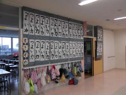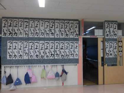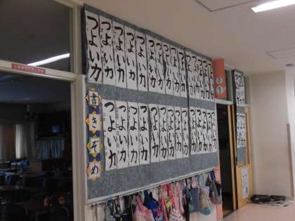3年生は初めて習字で書き初めをしました。筆をしっかりおろして「つよい力」と書きました。名前も大きく書けるようになりました。