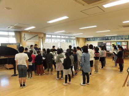29日(火)、合唱団の朝練習がありました。冷たい風が吹く中でも元気に登校し参加する姿がありました。「青い竜」のソプラノパート、アルトパートに分かれて練習した後、全体で合わせました。まだ歌い始めて2回目ですが、3台のピアノの音を頼りに歌っていました。