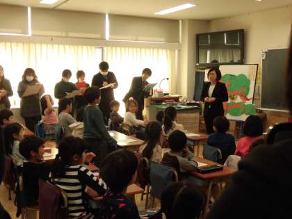 30日(水)の5時間目、1年1組は道徳の時間でした。今回は、校内研究会の研究授業でもありました。「二わのことり」の話をパネルシアターで聞き、「みそさざい」の気持ちについて考えました。子どもたちは、40名の先生がいる中でも普段通り落ち着いて学習をしました。授業後、会議室において講師の先生よりご指導をいただきました。今回は、芦花中学校の校長先生に講師をしていただきました。