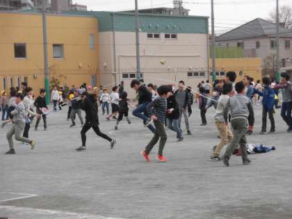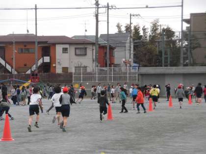 8日(金)の昼休みの様子です。前半は中学生も昼休みで校庭で遊ぶ姿がありました。小学生は校庭の半周を走ったり、クラス遊びをしたりして楽しく過ごしました。中学生と小学生が同じ校庭でそれぞれに遊んでいる姿が見られるのは施設一体型の学校ならではです。