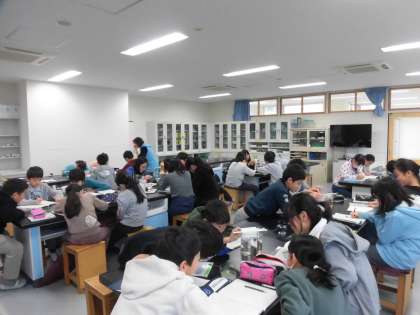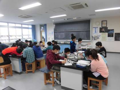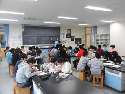 9日(土)の3時間目、5年1組は理科の時間でした。理科室で単元名「もののとけ方」の学習をしていました。今回は、食塩を水にとかす実験をしました。比較用に「コーヒーシュガー」も水にとかしてその違いを見比べました。「ものがとけること」に興味をもってずっと観察する姿がありました。