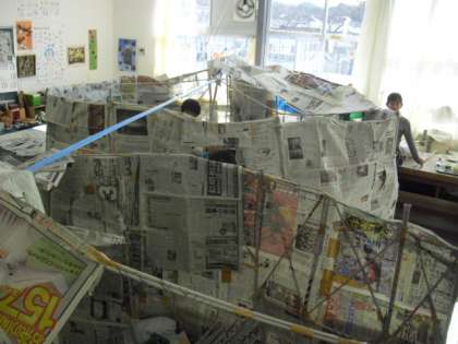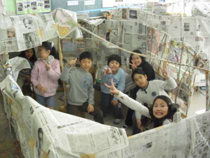 1/31 新聞紙のかくれがづくり3(4年生)