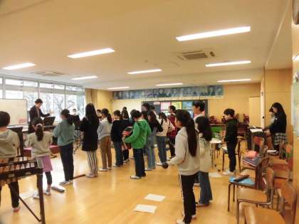 14日(木)も音楽クラブの朝練習がありました。翌日が本番とあって各パートが集まって「リメンバーミー」の曲を合奏しました。「最初の音をそろえる」「自信をもって演奏する」と先生からアドバイスがありました。昼休みに楽器を体育館に運ぶことを確認して8時10分に解散しました。