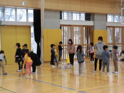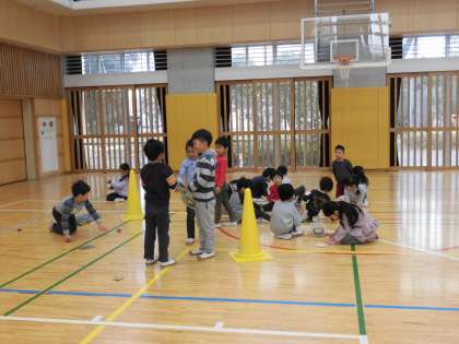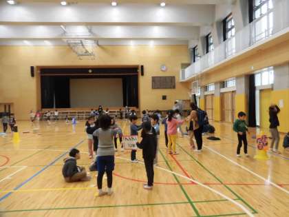 15日(金)の午前中、1年生は近隣の保育園、幼稚園の子どもたちと昔遊び会をしました。1・2時間目は、1年2組と5組の子どもたちが3つの保育園の子どもたちと一緒に遊びました。お兄さん、お姉さん振りを発揮していました。