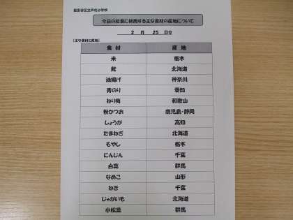 2月の最終週。日中は春の陽気が感じられるようになりましたね。給食で使う食材も、だんだんと春のものが多くなっていきます。いろいろな食材・料理が登場する給食を、よく味わいながらいただきましょう。