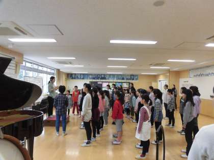 27日(水)、合唱団の朝練習がありました。「青い竜」の練習です。リズム打ちをしたり、列ごとに歌ったりしました。後半は、ソプラノとアルトに分かれて練習しました。互いの音を聞きながら歌うことができるようになってきました。