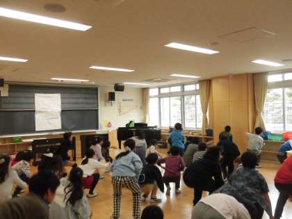 27日(水)の5時間目、5年生は6年生を送る会の練習をしました。グループに分かれ、民舞やダンスの練習をしていました。写真は、第2音楽室で練習している様子です。本番ではどのようにつながるのか、楽しみです。
