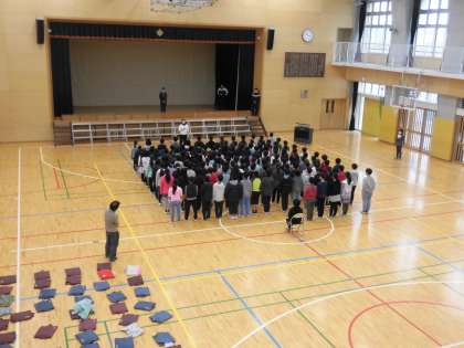 28日(木)の2時間目、4年生は体育館で6年生を送る会のリハーサルをしました。「練習は本番のようにやろう」「声や態度で思いを伝えよう」と学年の先生から話があり、最後の練習に臨みました。呼びかけの声や態度、歌声もとても素晴らしかったです。明日の本番が楽しみです。