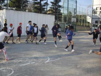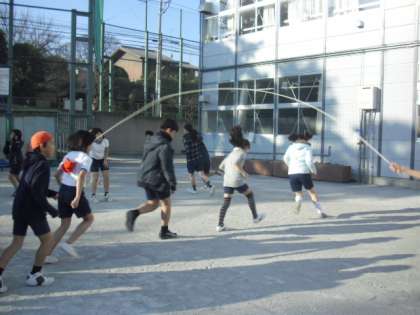 今朝の体育朝会「第3回大なわ大会」の様子です。学級ごとに5分間で跳ぶ回数を競います。どの学級も目標回数を設定し練習に取り組んできました。1年間の成果を発揮しようと、各学級が気持ちを合わせながら跳んでいます。