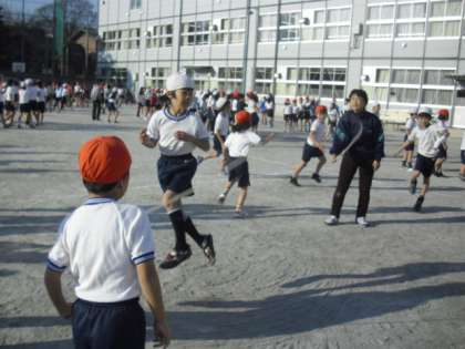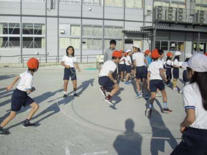 跳ぶ際に、声を掛け合いながら跳んでいたり、失敗しても「ドンマイ!」と励ましたりする姿に学級としての成長を感じます。記録を更新した学級も多く、低学年では両手を挙げて喜んでいる学級もありました。大なわ大会は終了しましいたが、年度内での新記録更新を目指していきます。