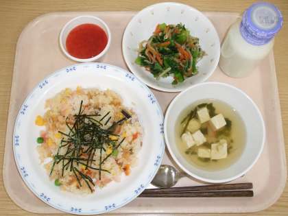 今日は“ひな祭り”献立です。菜の花やいちごなど、春を感じる食材をたくさん使いました。色どりも豊かでおいしかったですね。