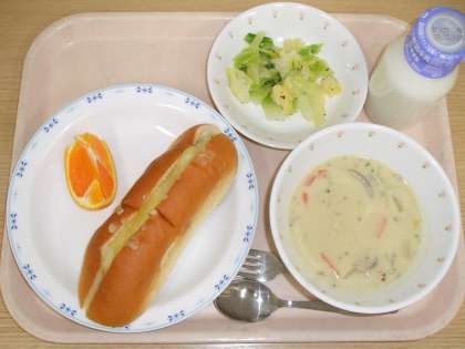 「ポテトサンド」は、ホクホクのじゃがいもを“ポテトサラダ”のように仕上げ、パンに挟んでオーブンで焼いた、“おかずパン”です。上からチーズもかけているので、中の具材の味付けは薄めに作っています。今日の給食も、クラスのみんなでおいしく、楽しくいただきました!