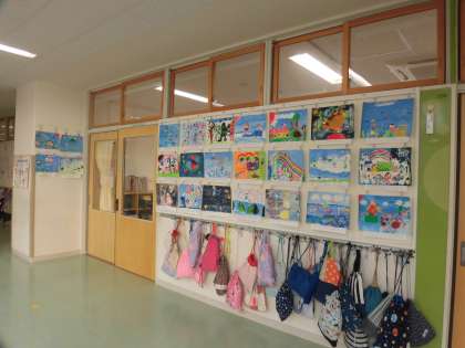 1年生の廊下には、図画工作の時間に描いた「できたらいいな こんなこと」の絵が飾られています。「海の中でくらしてみたい。」「怪獣とかけっこ」「富士山の上で虹を見たい。」などたくさんの「できたらいいな」があります。ご来校の際はぜひご覧ください。