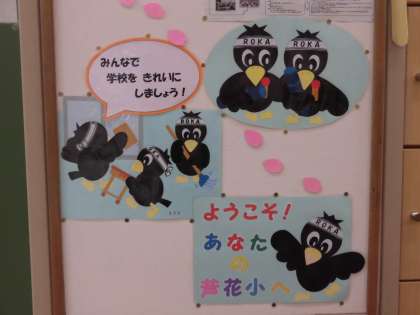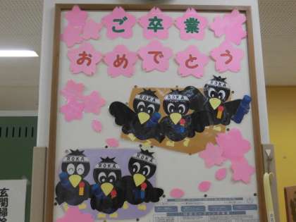 季節や学校行事を取り入れて掲示していただいている玄関脇の「ろからす」もいよいよ最終月になりました。今回は、卒業と大掃除がテーマになっています。毎月の掲示をありがとうございました。