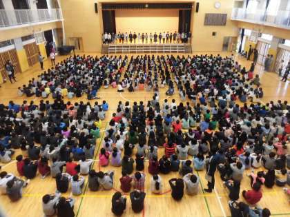 8日(金)の朝、体育館でクイズ集会をしました。進行は集会委員です。今回は、6年生の素晴らしいところをクイズにして出題しました。最後に、6年生に「ありがとうございました。」とお礼を言って終わりました。