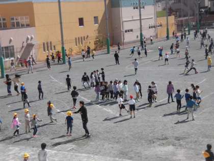 8日(金)の昼休み、校庭では子どもたちが元気に遊ぶ姿がありました。7日に雨がふったので「待ってました!」とばかりに勢いよく校庭に出て行きました。中学生の昼休み時間とも少し重なり、小学生と中学生が同じ校庭でそれぞれに楽しむ姿がすてきでした。