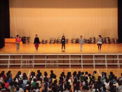 全校朝会の後半は、あいさつ運動の引き継ぎをしました。1年生から5年生に引き継がれました。1年生、5年生の代表それぞれに堂々と言葉を述べていて立派でした。