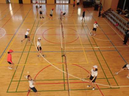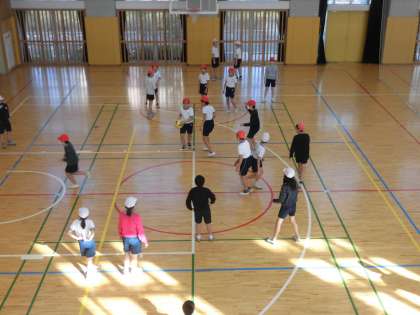 クラブ活動最終回、体育館では2つのクラブが活動しました。写真は上から、室内スポーツクラブ、ラケットスポーツクラブです。両クラブとも元気な声が響いていました。