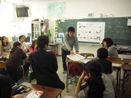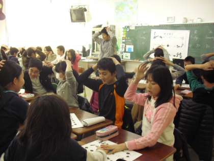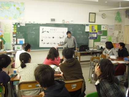 6年生の英語活動の授業の様子です。授業をしているのは4年生の瀧藤先生です。子どもたちとのコミュニケーションを進んで楽しんでいるような指導振りでした。子どもたちとの英語でのやりとりがテンポよく交わされていました。