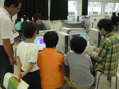 パソコンクラブ、野外球技クラブの様子です。3年生は、既にクラブに入ったかのように溶け込んでいました。クラブ活動は学年や学級を離れて、同好の異学年集団で活動します。子ども同士のかかわりがより一層豊かになる活動です。
