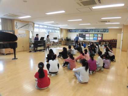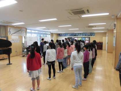 19日(火)の朝、合唱団の朝練習がありました。全員で「愉快に歩けば」をはじめとする歌を歌いました。23日(土)に半年間の成果を「スプリングコンサート」と題して披露するため、練習にも熱が入ります。長なわ大会の朝練習と重なり、午前8時前には人数が半減しました。