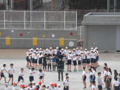 19日(火)の朝は、校庭で第3回長なわ大会を行いました。3月1日(金)に予定していましたが、雨天のため、今回の開催となりました。延期になったことで、子どもたちの練習熱が高まったのも事実です。午前8時25分、体育着に着替えた子どもたちは、各クラスの場所に集まりました。元気よく挨拶をしてから、練習をしました。クラスによっては円陣を組んでやる気を高めていました。