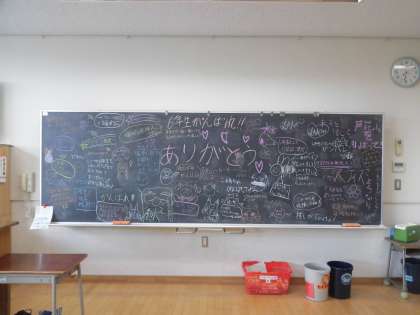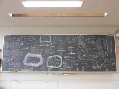 6年生は20日(水)の放課後に5年生の教室に入らせてもらい、メッセージをかきました。登校してきた5年生は驚きながらも喜んでいました。写真は上から3組、3組の背面黒板、4組の様子です。