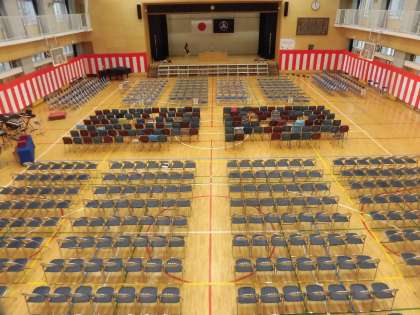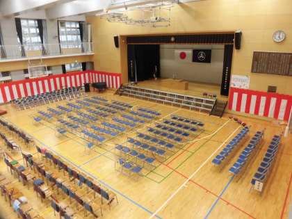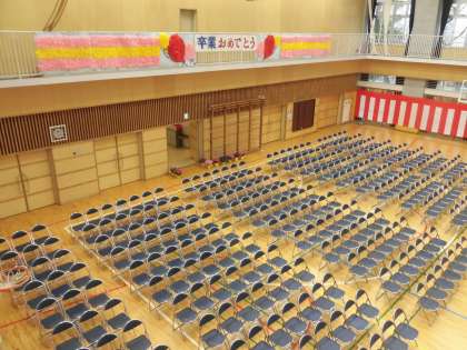 22日(金)の午後、先生達で卒業式の会場準備を行いました。ステージ上に生花を飾ったら完成です。いよいよ25日(月)が卒業式です。