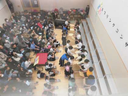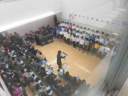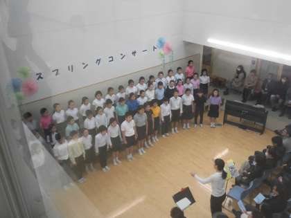 スプリングコンサート後半の部は、全員合唱「赤い屋根の家」でスタートしました。その後、卒団セレモニーをしました。6年生一人ひとりに記念の封筒が手渡されました。その後、6年生から合唱団の思い出や下級生へのメッセージを話しました。「厳しいときもあったけど」「練習に来るのがいやになったときもあったけど」と言いながらも、「続けてよかった」「中学校でも生かしていきたい」と前向きな言葉で締めくくっていました。セレモニー後は、全員で「WISH]「青い竜」「ふるさとの四季」を歌ってお開きとなりました。コンサート開催にあたり、合唱団世話人の皆様方には会場設営、装飾、会場案内、片付け等で大変お世話になりました。厚く御礼申し上げます。
