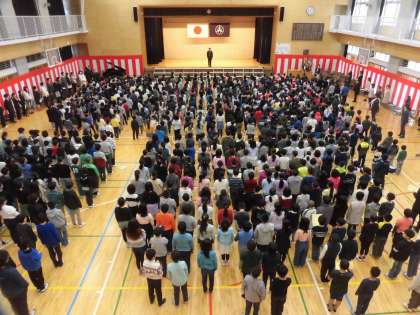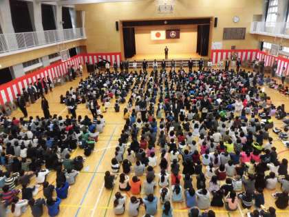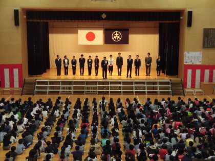 8日(月)、第一学期の始業式を行いました。雨天のため、入学式用に並べておいた椅子をすべて片付けることから始まりました。6年生と5年生がすすんで椅子運びを行いました。予定通り、午前8時25分から始業式を始められました。校長先生から退職や転出した先生の紹介、新しく転入した先生の紹介があり、次に、担任発表をしました。子どもたちと先生との初顔合わせができました。