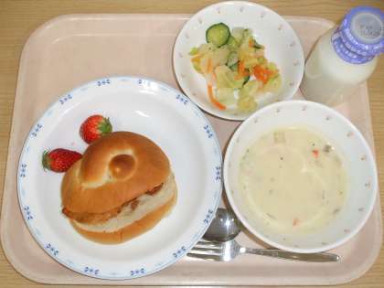今日は「パンの日」ということで、「フィッシュサンド」に仕立てていただきました。魚のフライはサクサクと仕上がっていて、バーベキューソースとの相性が抜群でしたね。