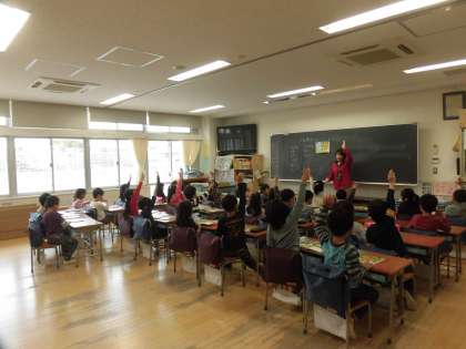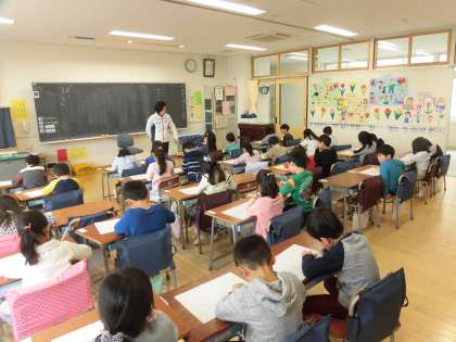 1年生のスタートカリキュラムもどんどん進んできました。プリントで鉛筆の動きを練習したり、教室でゲームをしたりして楽しく過ごしました。先生の質問に対して「はい」と返事をしながら、ピンと腕を伸ばすこともできました。